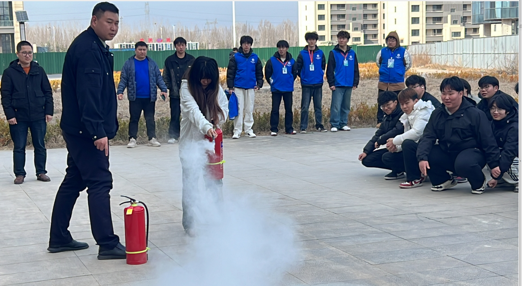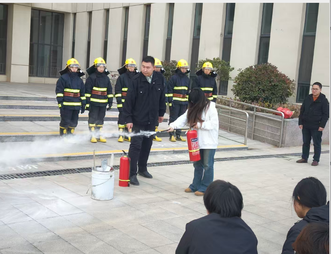 疏散完成后,消防科工作人员开展消防安全培训,结合校园火灾特点,讲解初期火情处置、灭火器使用及火场逃生要点,并现场演示“提、拔、握、压”操作要领。随后,学生代表上台实操灭火,在专业指导下成功扑灭模拟火源,为全体师生树立了规范操作的榜样。