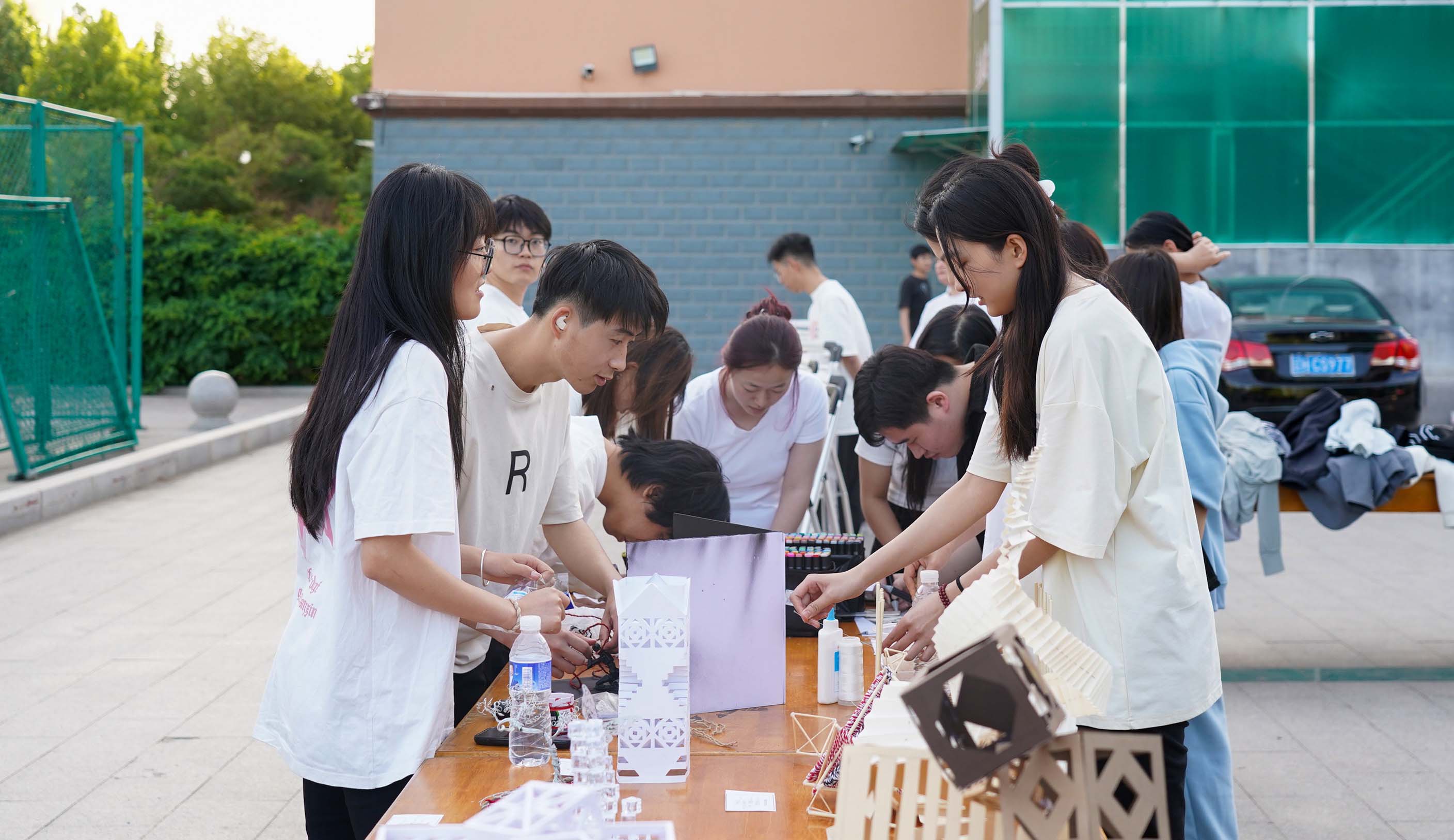 视觉传达部分作品展示,学生在进行现场风景速写。