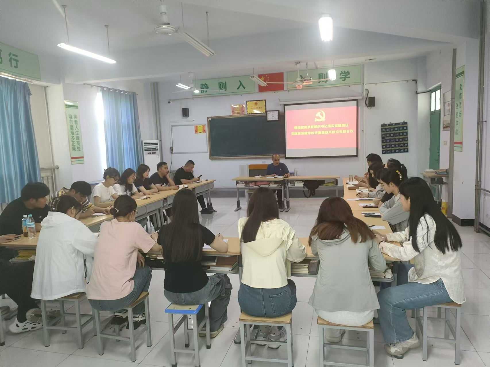 五月二十二日下午,本科教育学院积极开展推动学院工作部署的党团活动室建设工作,本次会议由系主任冉祥勇组织召开,参会人员有系部全体党员教师及早期教育教研室全体教师。