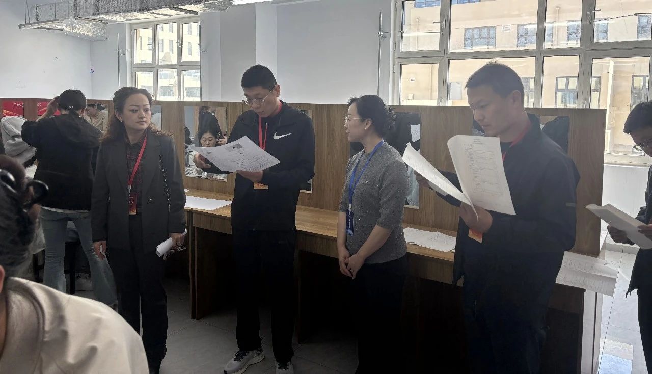 德州市技工教育发展中心社会评价科科长周志朋,禹城市人社局职业技能鉴定中心主任杨广等一行5人来到考试现场检查指导工作,继续教育学院党支部书记、院长张蕊陪同。