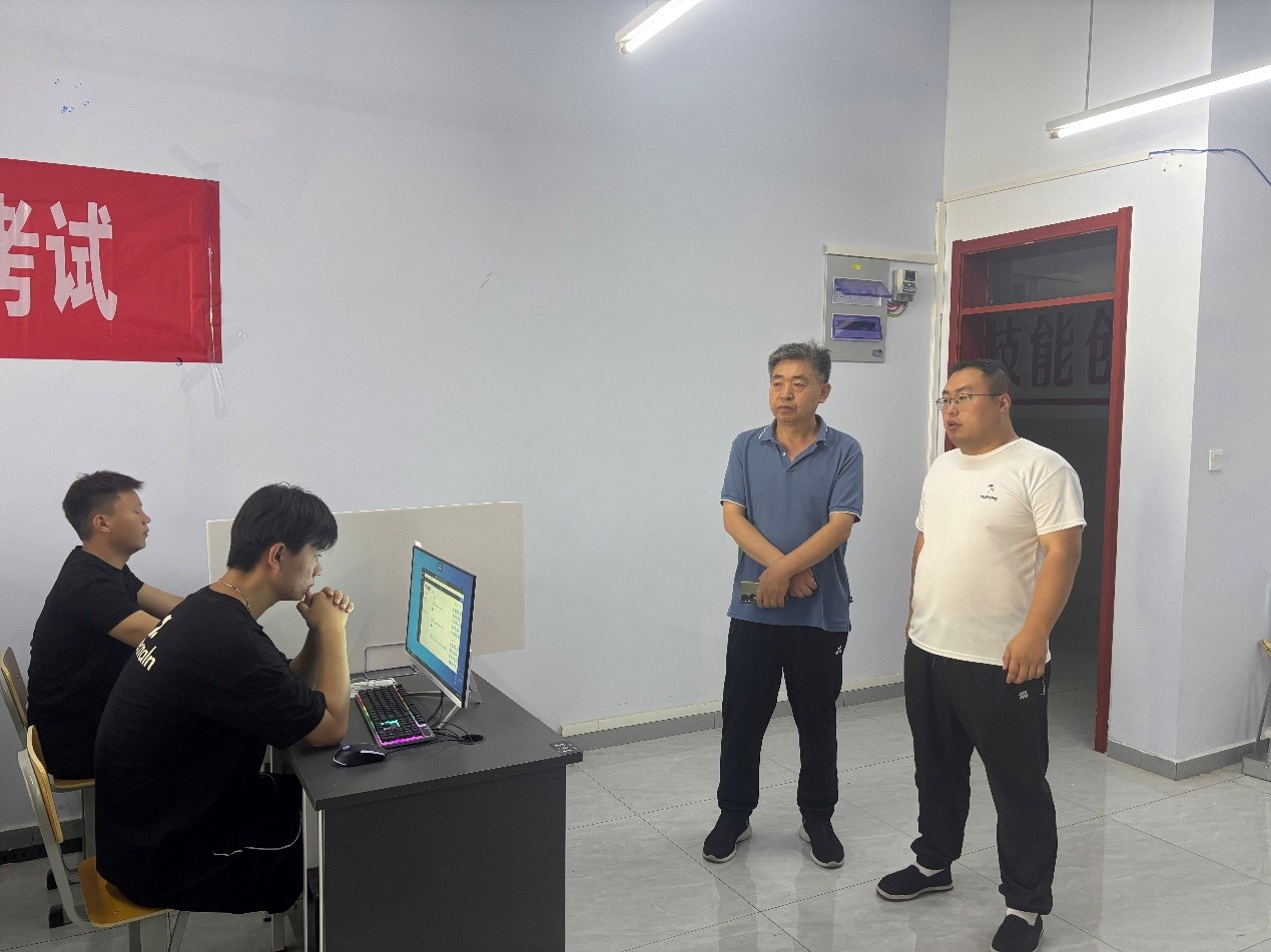 德州禹城市人社局职业技能鉴定中心主任杨广来到考试现场检查指导工作,继续教育学院党支部书记、院长张蕊陪同。