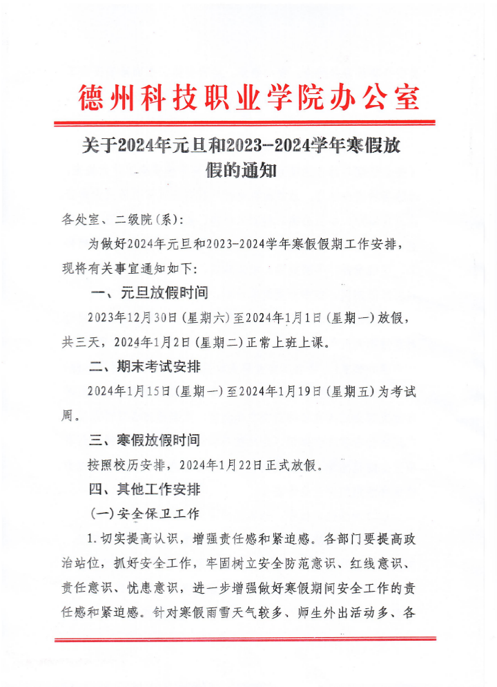元旦放假通知