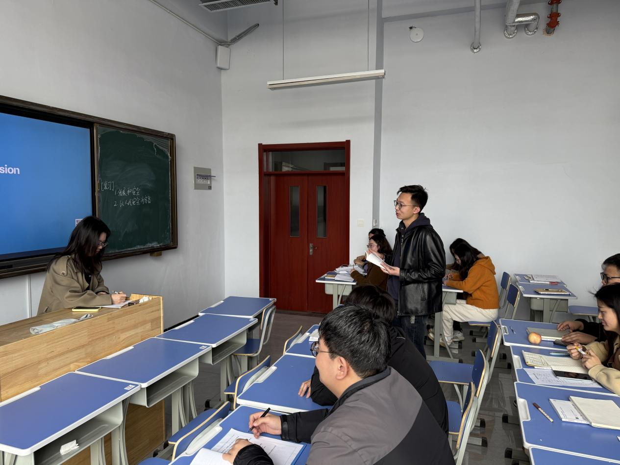 活动当天,来自各学科的教师齐聚一堂,围绕第四周教学内容展开深入研讨。在集体备课环节中,教师们小组为单位,结合课程标准和学生学情,对教学目标、教学重难点、教学方法等进行了细致分析。大家各抒己见,集思广益,共同打磨教学设计,力求每一节课都能达到最佳效果。随后,一组成员李景超和张梅杰老师首先进行了试讲展示。试讲过程中,两位教师充分展现了扎实的专业功底和独特的教学风格。李景超老师通过生动有趣的案例导入新课,激发学生的学习兴趣;张梅杰老师运用多媒体技术,将抽象的知识点形象化,帮助学生更好地理解,同时注重课堂互动,引导学生主动思考,培养学生的批判性思维。
