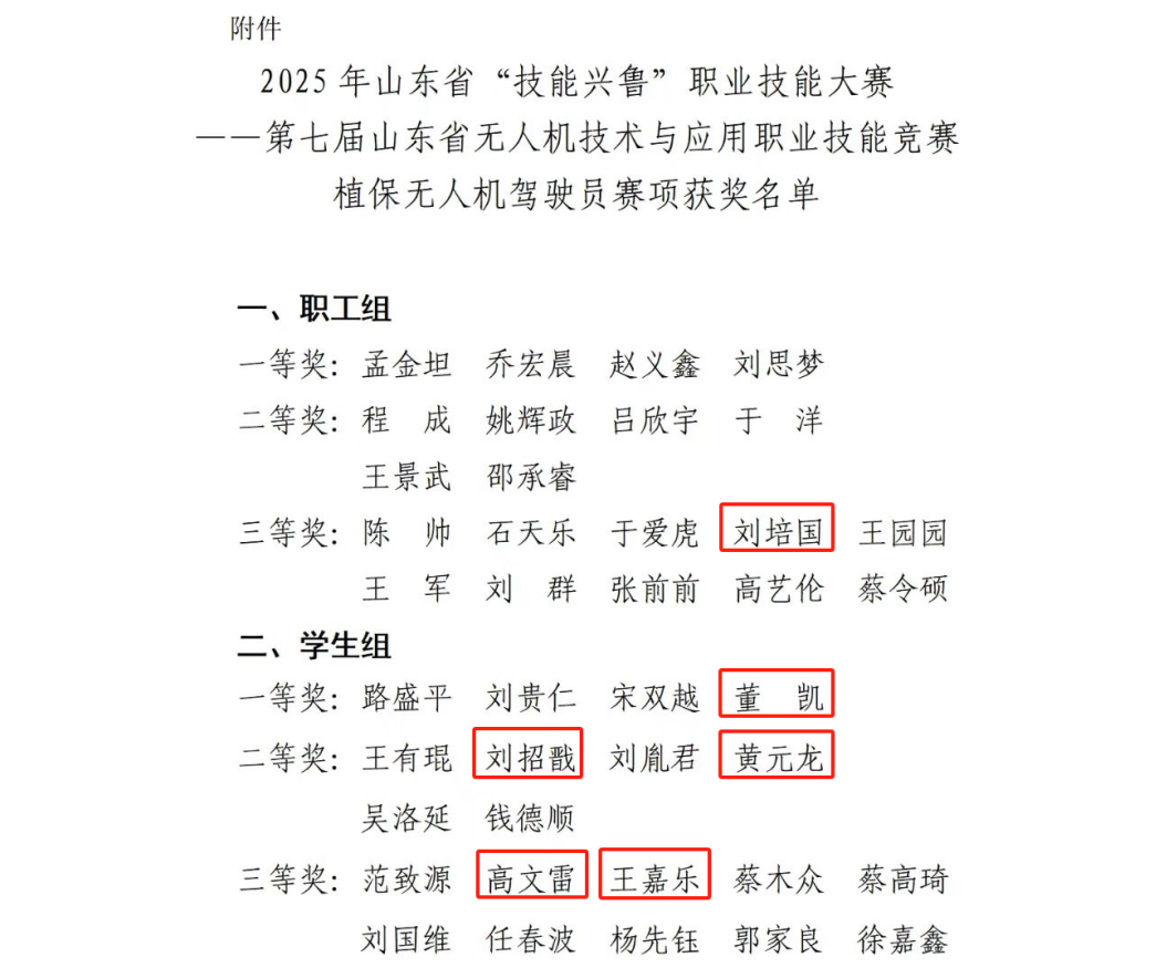 近日,由山东省无人机技术与应用协会主办的 2025 年山东省 “技能兴鲁” 职业技能大赛 —— 第七届山东省无人机技术与应用职业技能竞赛植保无人机驾驶员赛项圆满收官。