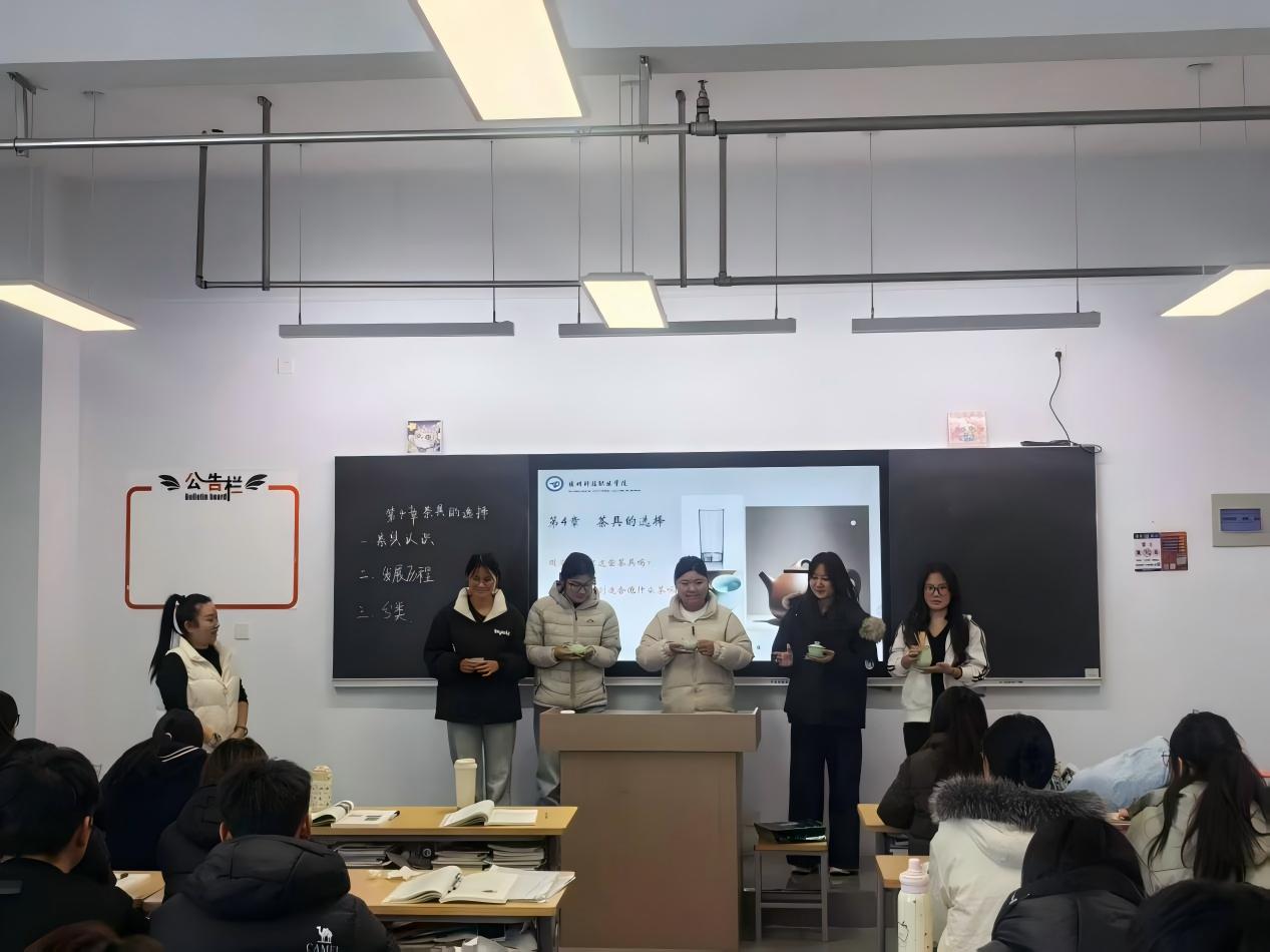 主持人对活动全程进行回顾总结,重申茶文化的思政内涵与实践意义,感谢师生的积极参与。评委依据茶艺展示效果、文化分享质量、互评参与度等标准,评选出“最佳茶艺展示组”“最具创意分享奖”等荣誉,课程教师为获奖小组及个人颁发特色茶具、茶文化书籍等小奖品,并合影留念。