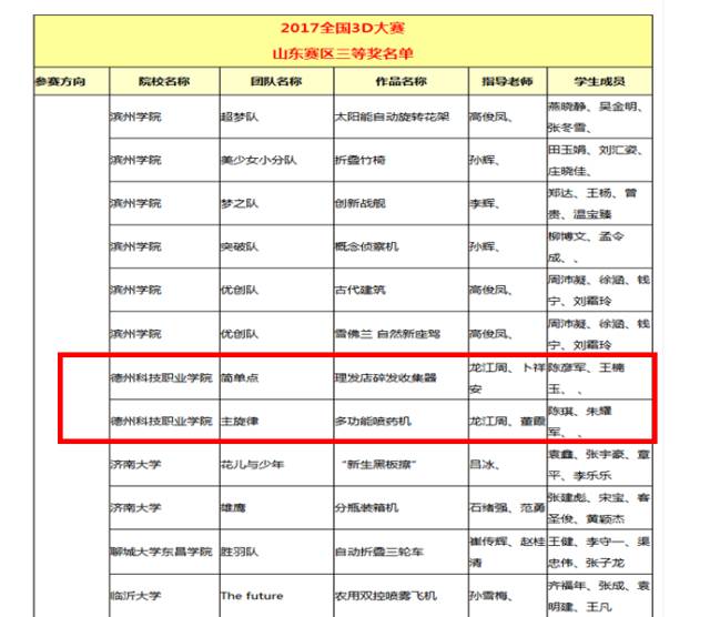 2017年10月20日-22日大赛组委会与山东省三维数字化技术教学研究会在德州学院举办了2017第十届全国3D大赛山东赛区评审、颁奖活动,我院参加的四个作品分别获得一等奖、二等奖、三等奖的好成绩。