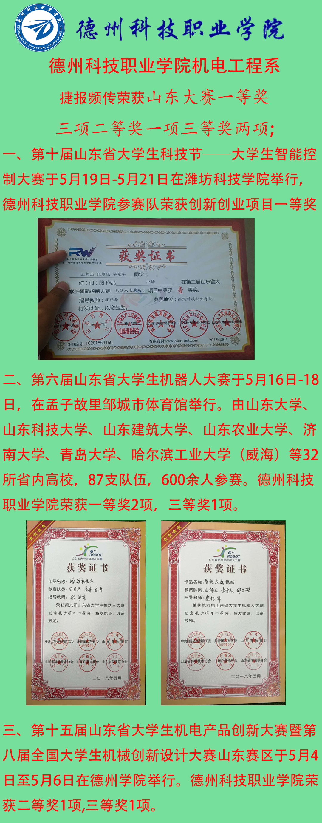 机电工程系捷报频传