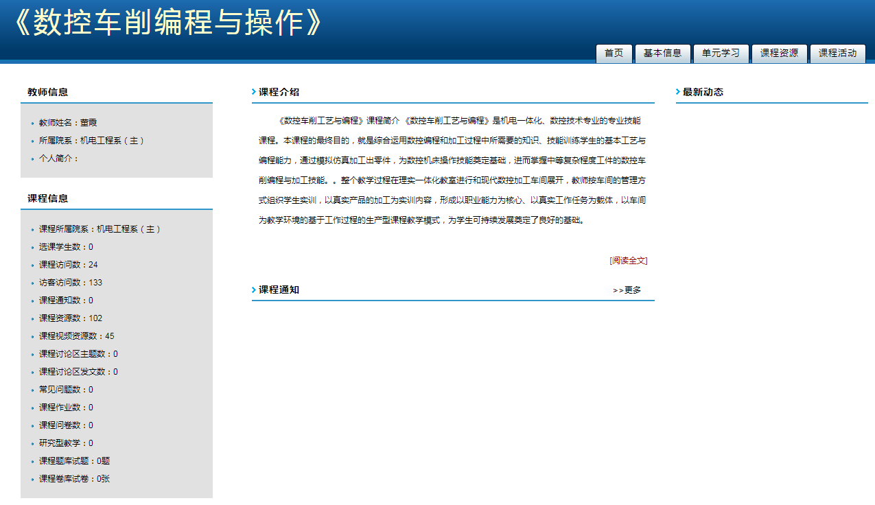 《数控车削工艺与编程》是机电一体化、数控技术专业的专业技能课程。本课程的最终目的,就是综合运用数控编程和加工过程中所需要的知识、技能训练学生的基本工艺与编程能力,通过模拟仿真加工出零件,为数控机床操作技能奠定基础,进而掌握中等复杂程度工件的数控车削编程与加工技能。。整个教学过程在理实一体化教室进行和现代数控加工车间展开,教师按车间的管理方式组织学生实训,以真实产品的加工为实训内容,形成以职业能力为核心、以真实工作任务为载体,以车间为教学环境的基于工作过程的生产型课程教学模式,为学生可持续发展奠定了良好的基础。