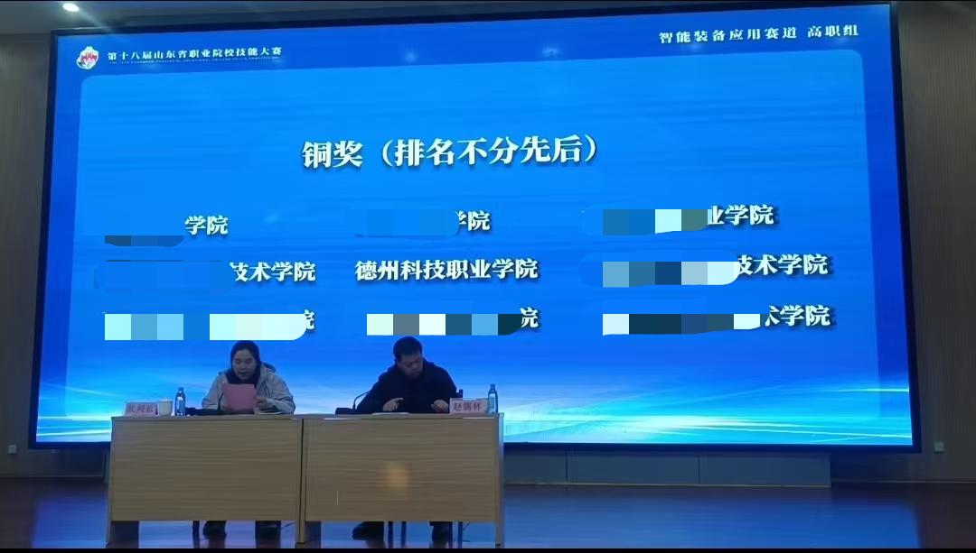 技能大赛方面,在第十八届山东省职业院校技能大赛高职智能装备应用赛道上,全省61支队伍同台竞技。我院将赛事作为检验“党建 + 技能培养”的重要平台,校领导与教学科研部领导多次现场指导,白庆丽院长亲自打磨参赛项目。由崔艳华、孙启奎老师指导,郭才龙、李鹏坤等四名学生组成的团队,秉持品牌理念,凭借扎实功底和稳定发挥斩获铜奖,印证了学院 “双高” 建设与专业智改数转的显著成果。