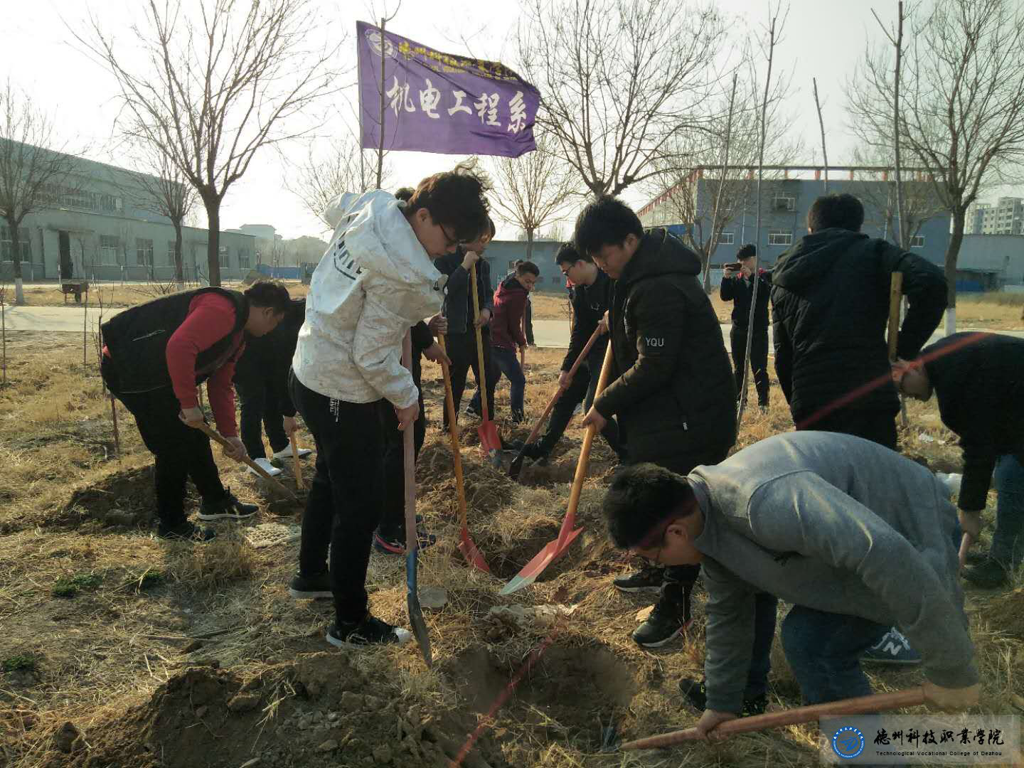 阳春三月,春回大地,万物复苏,又到了让人看到希望的季节,收起了刚过去的寒冷,迎来了春暖花开,机电系的老师和同学们在3月12日植树节为生态种下一棵希望之树,今天种下一棵树,明天收获一片绿色,给地球一点绿色,世界还我们一片清新,在这美丽的节日,从一棵树做起,从一棵树做起,你栽一棵树,我栽一棵树,我们共同为地球添绿,一起行动起来吧!