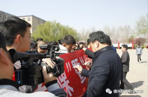 启动仪式上,学生代表、2017级电子商务专业学生邢发强宣读了《平安校园建设倡议书》;仪式结束后,现场领导及全体师生还共同参加了“维护国家安全 建设平安校园”签名活动。