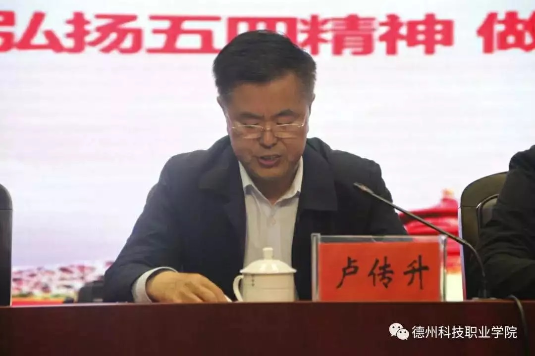 展德明强调,作为30年办学历史的高校,德科一批又一批朝气蓬勃、昂扬向上的青年大学生,用智慧、行动和梦想,在校园中描绘了美丽的人生篇章,为德科的发展增光添彩,并在德科历史上留下了一个又一个青春、靓丽的印记。希望青年团员要善于学习、主动学习,从思想政治理论、专业技能知识、社会实践活动中学习,把握好青年时期这一人生中最好的学习时光,以时不我待、只争朝夕的精神加强学习,做学习型人才。希望青年团员要培养品德、锤炼意志,既要注重增长才干,又要自觉加强思想道德修养,从日常的学习、实训、交往等细节小事做起,自觉遵守国家法律法规和校纪校规,用实际行动争做遵纪守法的模范、修身立德的标兵。希望团员青年要牢记责任、勇于担当,抱定“舍我其谁”的气魄,拿出“敢作敢当”的态度,投入到学习、实践中去。希望青年团员要努力进取、开拓创新,自我加压、努力进取,在学习、实践、大赛中争取好成绩,在精彩的青年时光中创造光辉的业绩。