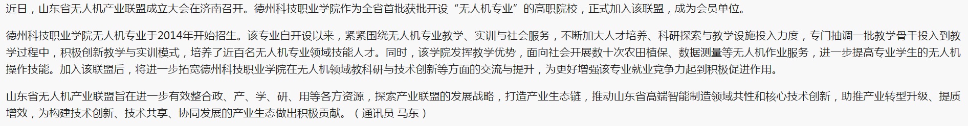 德州科技职业学院加入山东省无人机产业联盟