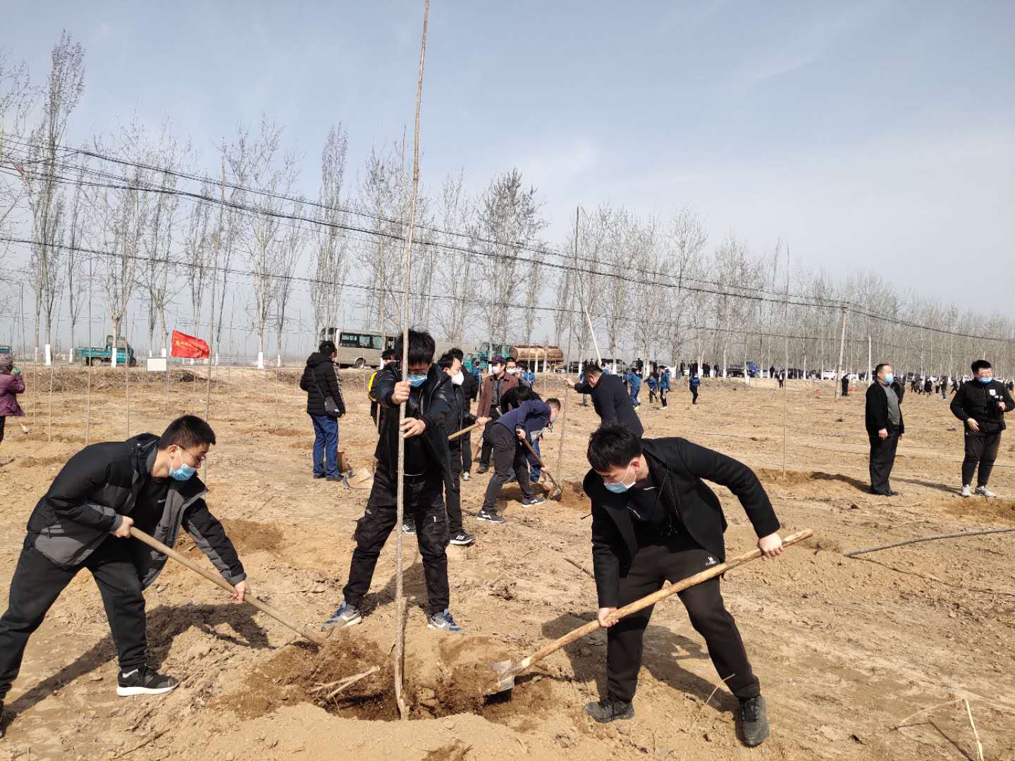 3月12日,在第42个植树节来临之际,学院领导和我院年轻教师霍建林、杨申通、邵国选来到义务植树基地参加全民义务植树活动,以实际行动号召全院系同学迅速掀起植树造林热潮。