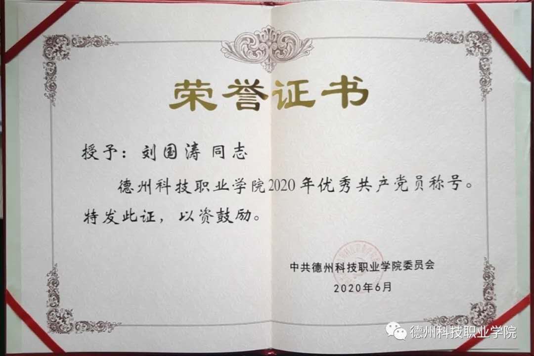 在第36个教师节即将到来之际,德州科技职业学院智能工程学院刘国涛科长荣获2020年“最美教师”称号。