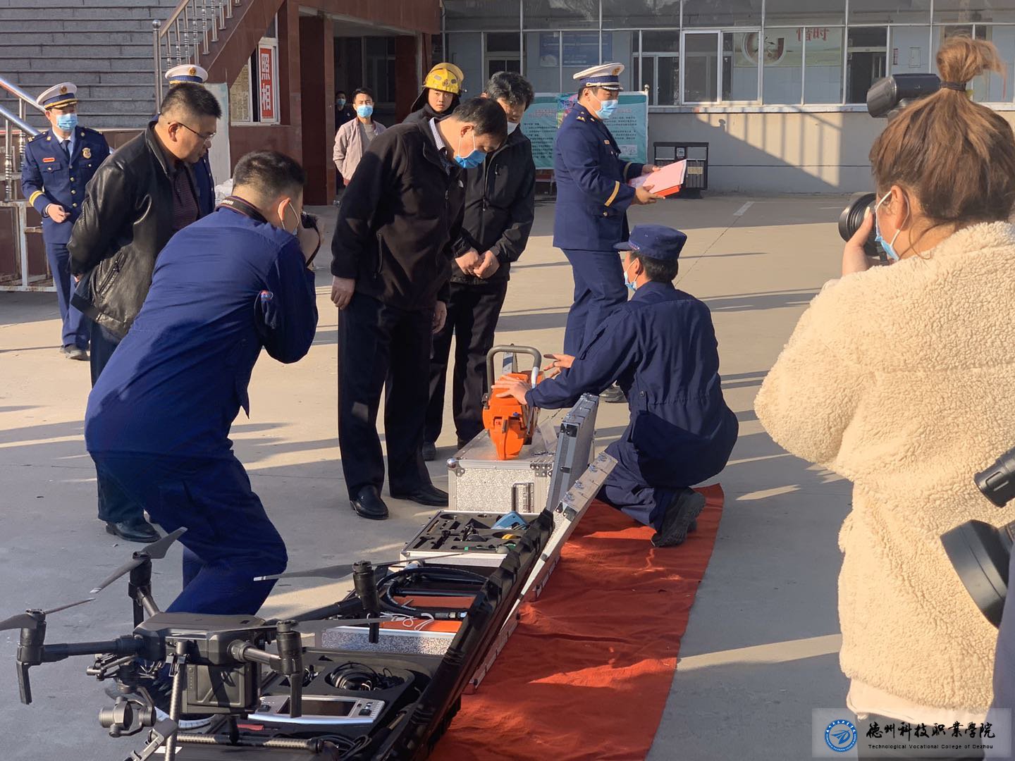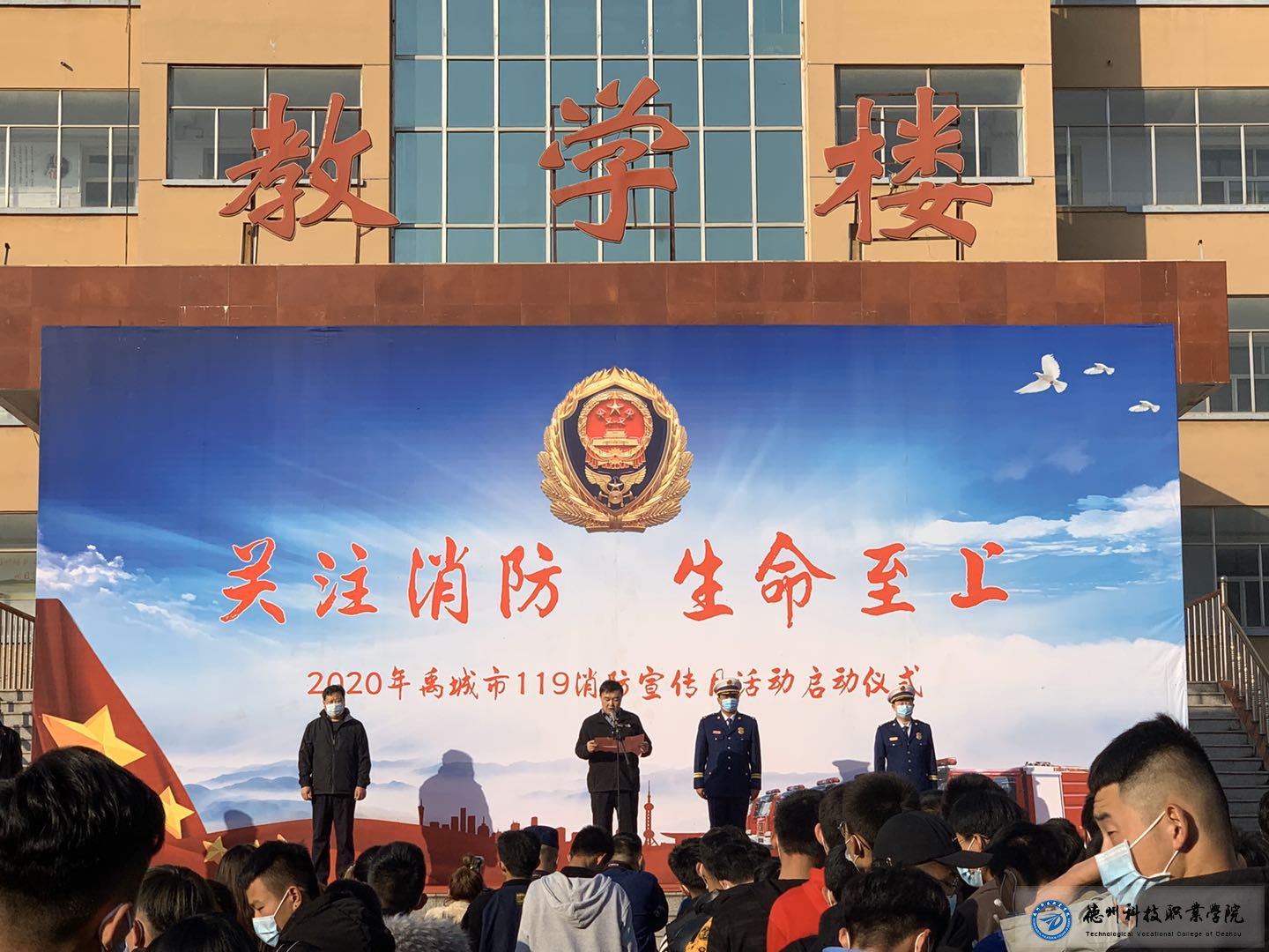 2020年11月9号,智能工程学院开展消防安全专题,本次邀请禹城市消防大队领导来此给学生开展消防安全知识讲答,本次围绕消防安全给学生普及了安全隐患和生活小常识,智能工程学院学生会全程用无人机进行拍摄,四辆消防车鸣笛缓缓驶入我们的眼中,为我们展示了在熊熊烈火中他们该如何应对,消防员的那份冷静,坚毅不屈的精神值得我们学习,会后,消防大队为我们准备了许多他们在救援中经常用到的消防工具,让学生们一一体验。