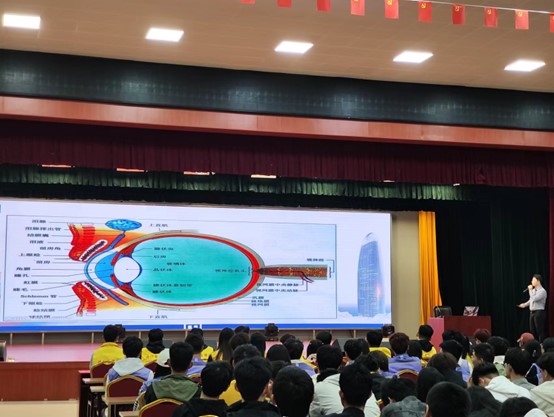 讲座伊始,教授详细阐述了眼睛的基本构造,如角膜、虹膜、晶状体和视网膜等关键部分,并解释了它们的功能。这一环节不仅帮助学生们理解了眼睛的复杂性和精妙之处,也强调了保护眼睛的必要性。