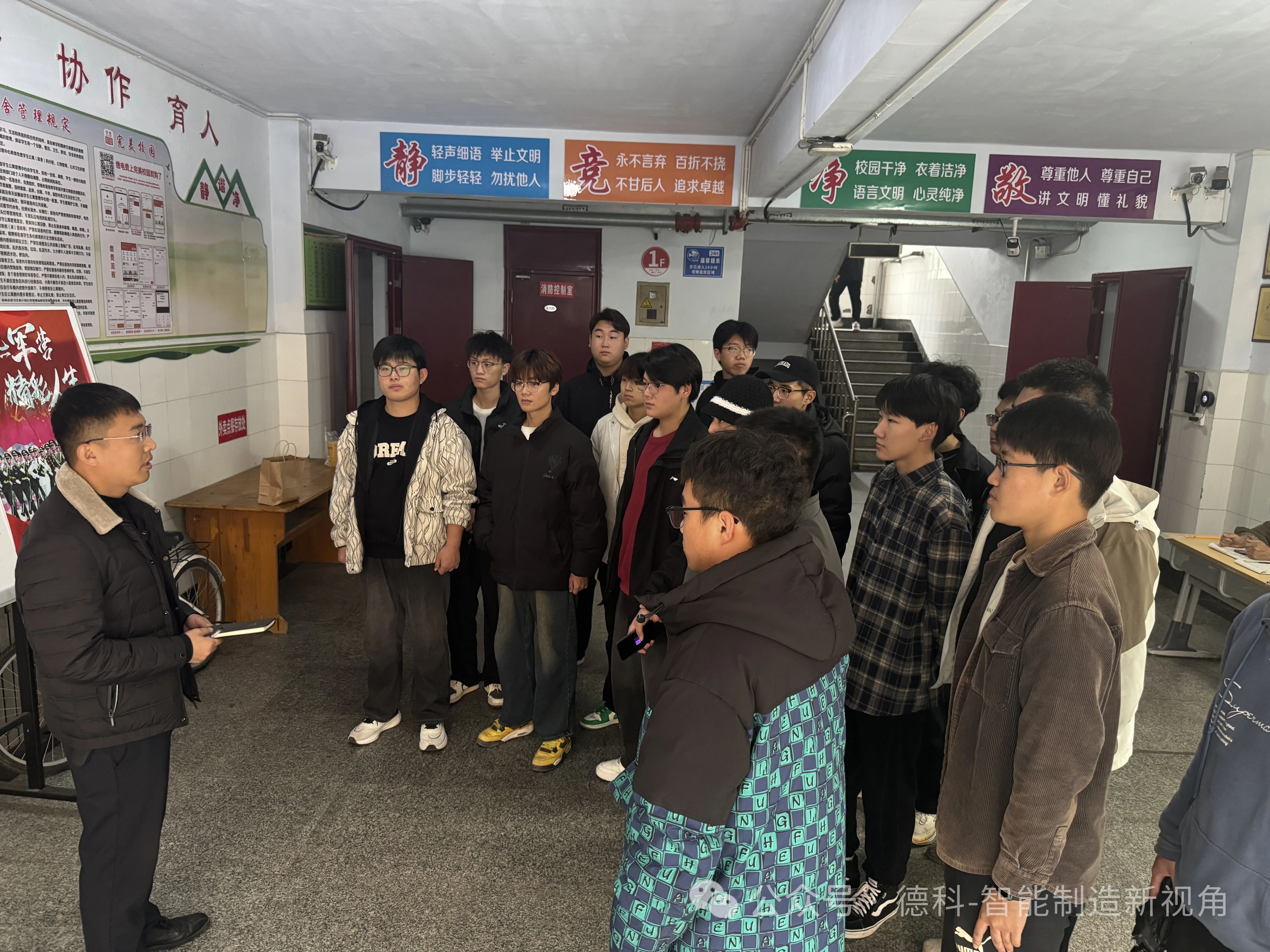 为加强“一站式”学生社区公寓管理,保障学生的居住安全,11月13日下午,智能制造学院开展了公寓安全隐患大排查,并召开全体宿舍长安全会议。党总支书记于广初亲自带领学生科长及辅导员全程参与。