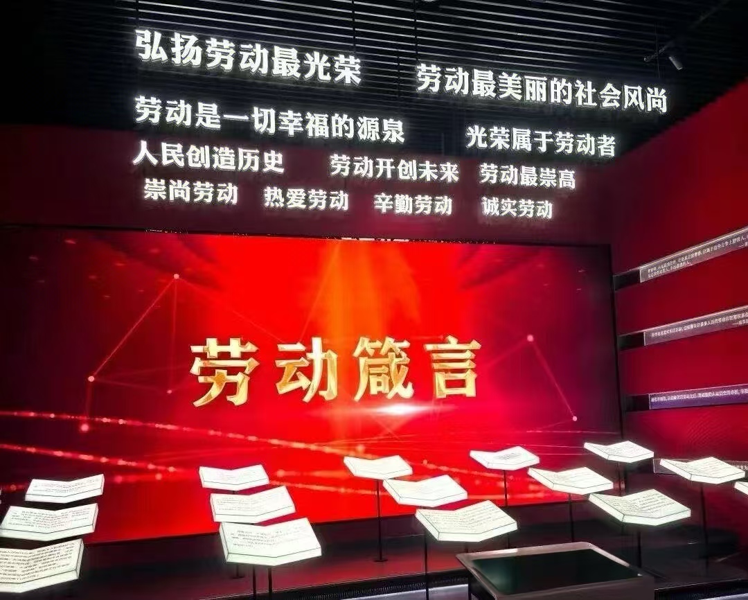 影片后,钟南山、时传祥、袁隆平等全国劳模的感人事迹逐一呈现,生动诠释“爱岗敬业、争创一流、艰苦奋斗、勇于创新、淡泊名利、甘于奉献”的劳模精神。学生们驻足“时空走廊”,触摸不同年代的劳动记忆,深切感悟时传祥等劳模“宁愿一人脏,换来万家净”的无私奉献情怀,内心备受触动。