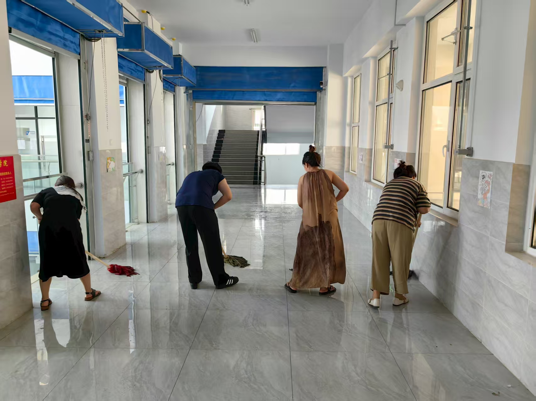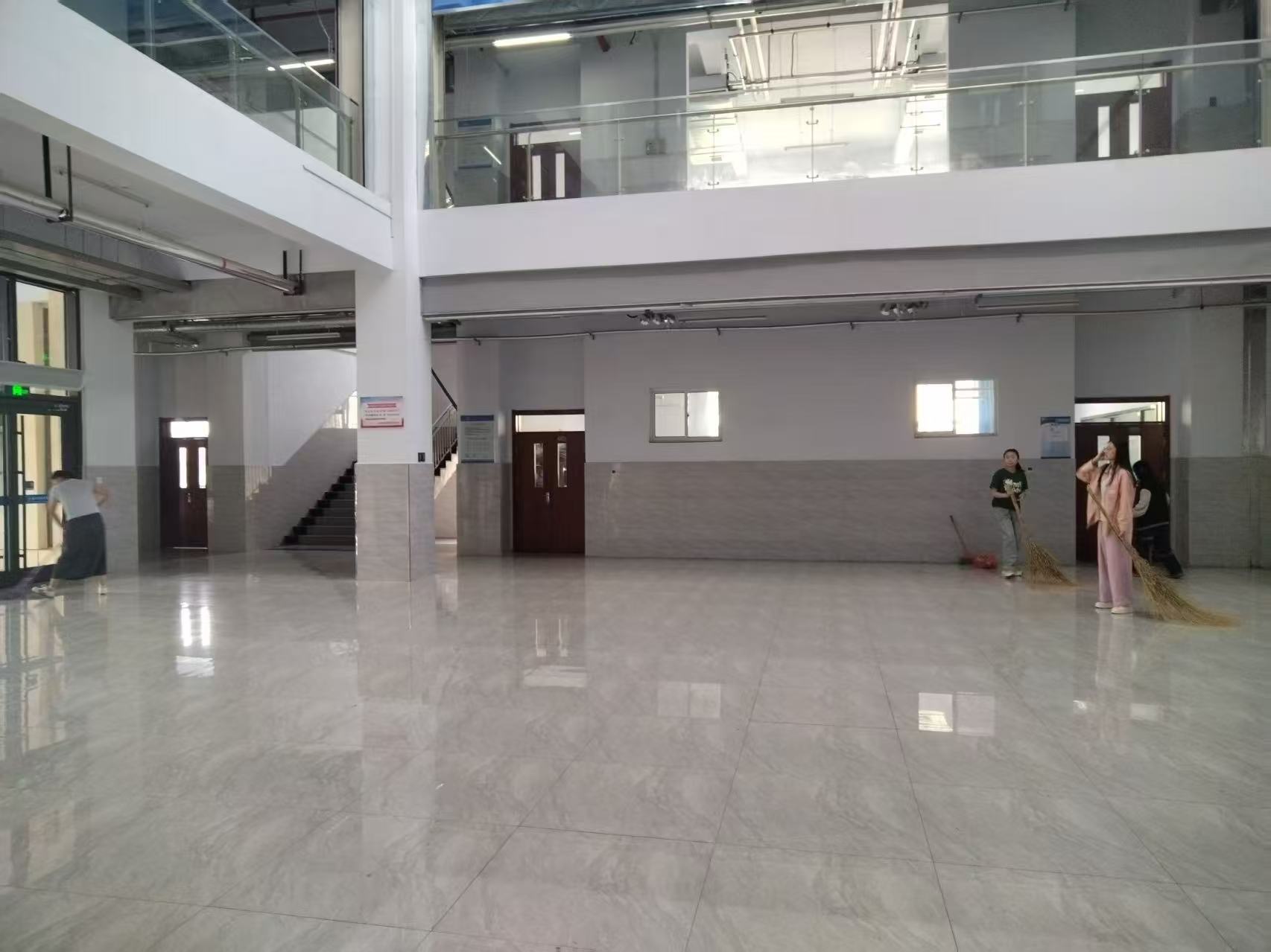 此次清扫覆盖学院所属教学楼的全部教室、走廊、楼梯间及公共活动区域,重点针对卫生死角、课桌椅缝隙、门窗玻璃等易被忽视的部位进行清理。活动前,学院提前制定清扫方案,明确分组分工,配备扫帚、抹布、消毒液等工具;行动中,老师们化身“保洁员”,两人一组、三人一队,有的弯腰擦拭课桌椅上的污渍,有的踮脚清理窗户玻璃上的灰尘,有的手持拖把仔细拖洗地面,还有的对走廊扶手、门把手等高频接触部位进行消毒消杀。