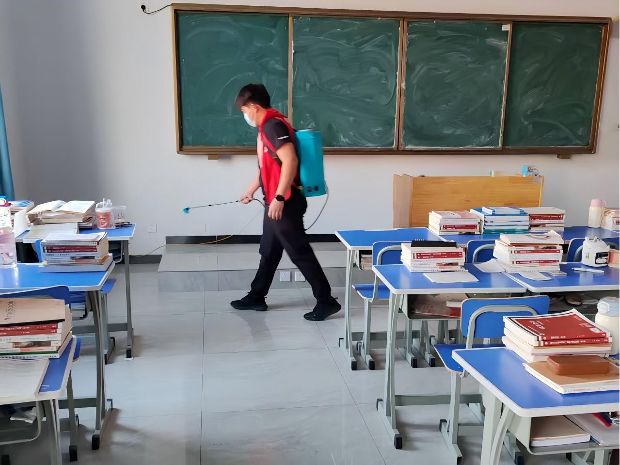 消杀过程中,师生协作团队以“全覆盖、无死角、见实效”为目标,严格遵循科学防控标准,聚焦教室、宿舍、公共走廊、卫生间等学生日常活动高频区域,针对门把手、楼梯扶手、桌椅等易接触部位,采用专业消杀药剂与规范操作流程进行消杀,全力为学生营造安全卫生的学习生活环境。