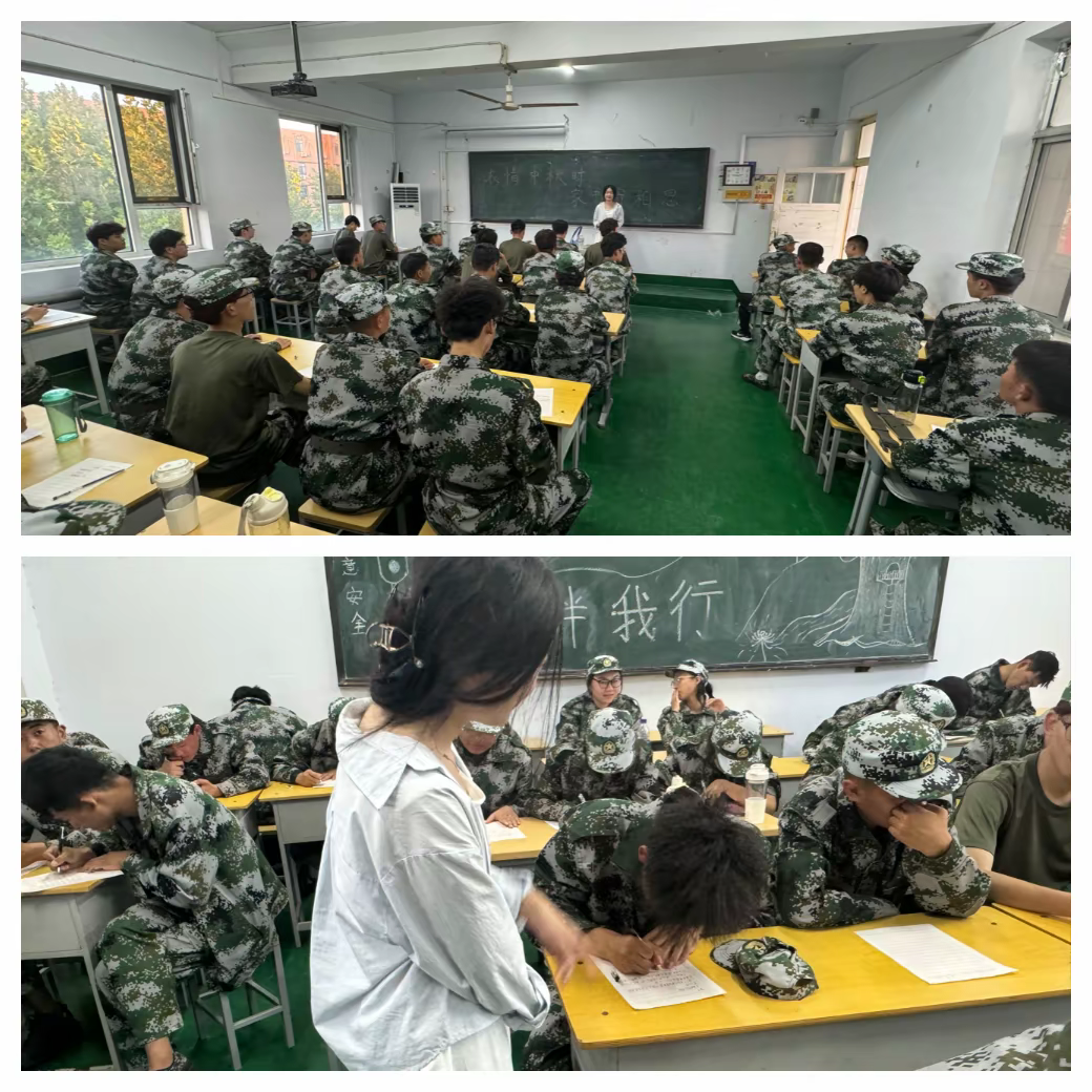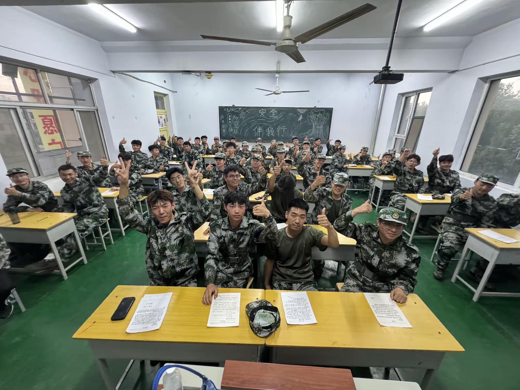 组织军训不能回家的学子们
