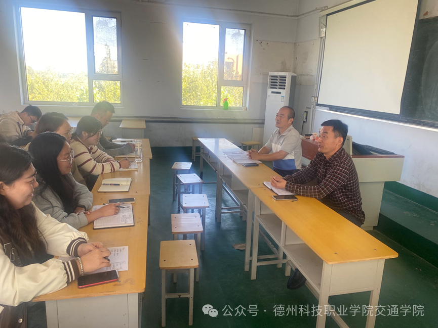 为明确教师上课考核标准和推动教师个人的职业成长规划,交通学院于10月10日在禹城校区主教学楼508室开展了专题教研活动。参与此次会议的人员包括交通学院党总支书记刘爱青、教研室主任孙绍彬以及禹城校区全体教师.