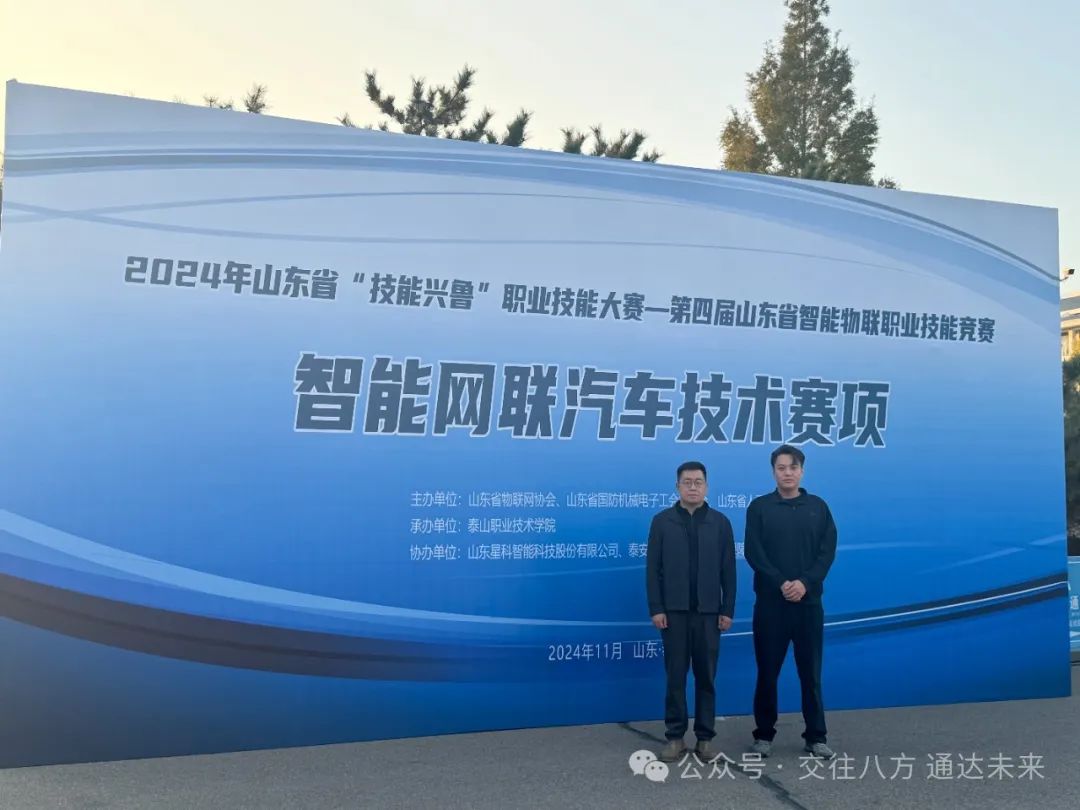 11月26日下午,由山东省物联网协会、山东省国防机械电子工会委员会、山东省人工智能协会联合主办的2024年山东省 “技能兴鲁”职业技能大赛——第四届山东省智能物联职业技能竞赛智能网联汽车技术赛项在山东省泰安市圆满落幕。经过为期两天的激烈角逐,德州科技职业学院交通学院的毕建涛、侯林康两位老师凭借精湛的技能强的拼搏精神,在智能网联汽车技术赛项职工组42个参赛队中脱颖而出,荣获教工组三等奖!填补了我院智能网联专业奖项的空白。
