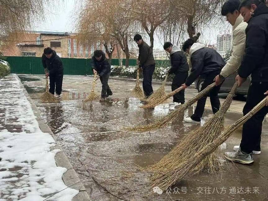 党员教师们以身作则,充分发挥先锋模范作用。他们早早来到校园,手持扫帚等工具,不畏严寒,迅速投入到扫雪的战斗中。团总支学生会的同学们也积极响应号召,纷纷加入到扫雪队伍中。他们朝气蓬勃、充满活力,在党员教师的带领下,分工明确、配合默契。有的同学负责清扫主干道,确保车辆能够顺畅通行;有的同学则专注于清理人行道和楼梯,防止师生滑倒受伤。大家齐心协力,共同为校园的整洁和安全贡献着自己的力量。
