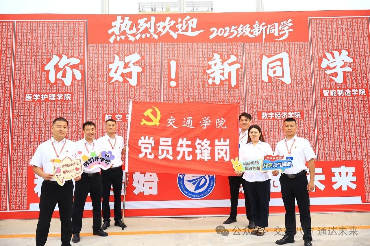 9月8日,德州科技职业学院交通学院迎来了充满活力的2025级新生。为充分发挥基层党组织的战斗堡垒作用和党员的先锋模范作用,交通学院党总支积极响应学校党委号召,在交通学院党总支书记刘爱青同志的带领下,把"党建引领放在迎新第一线",开展了一场有温度、有深度、有力度的迎新活动,成为迎新现场一道亮丽的红色风景线。