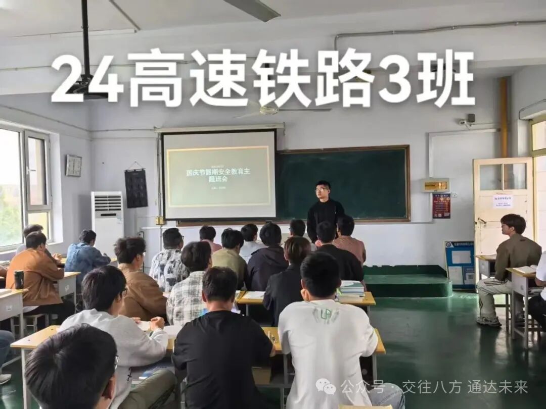 为帮助我院学生树立安全防范意识、掌握风险应对方法、规避假期安全隐患,营造平安和谐的校园及假期环境,在中秋国庆双节来临之际,交通学院开展了“假期安全防护”主题班会。本次班会旨在强化学生安全素养,提升应急处置能力,为学生度过平安祥和的假期筑牢安全防线。此次班会由各班辅导员主持,交通学院全体学生积极参与。