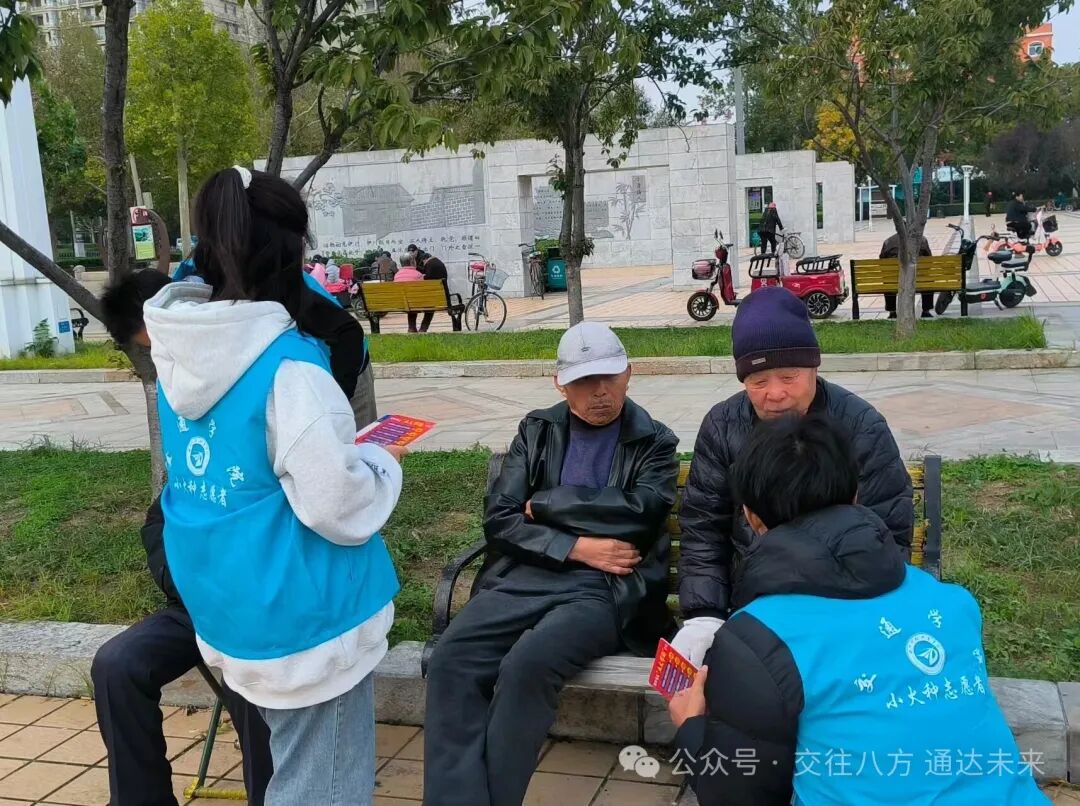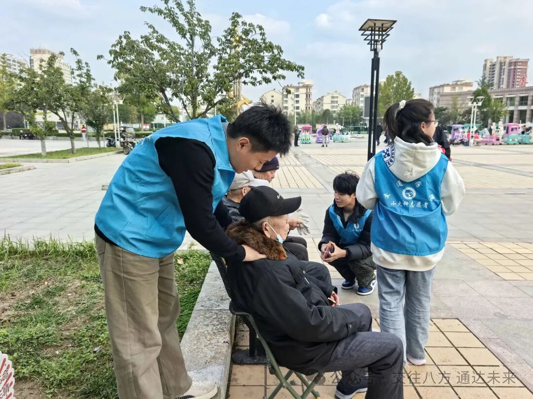 为深入学习贯彻习近平总书记关于老龄工作重要指示精神,落实主题教育“我为群众办实事”实践要求,10月19日下午,交通学院学生党支部、团总支组建志愿服务队,由辅导员高浩、丁浩带队,赴糖城广场开展“银龄守护”党建+志愿专项行动,把防诈课堂和康养服务送到老年人“指尖”“肩旁”,以党建温度托举幸福晚年。