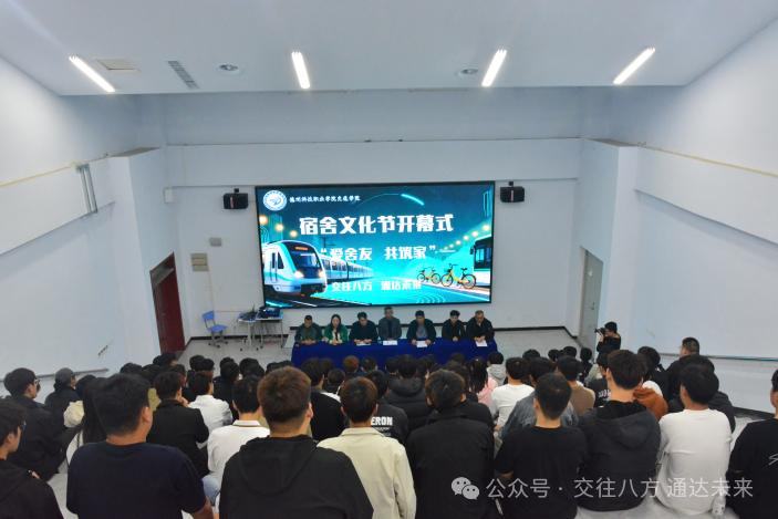 为深入贯彻“党建+安全+文化”三位一体育人理念,切实把宿舍建成党建前沿阵地、安全教育基地和文化润心港湾,10月20日,交通学院两校区同步举行2025年公寓文化节暨安全教育月开幕式。交通学院党总支副书记、副院长姜银珏,交通学院教师党支部书记、团总支书记孙峰,交通学院学生党支部书记王新,学团工作部公寓管理科副主任马腾,安全与后勤保障部消防科副科长聂振春,以及交通学院全体辅导员及班长、参加了本次开幕式。