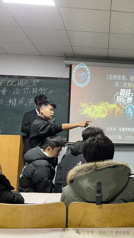 2025年12月4日,交通学院团总支在主教学楼512开展了一场别开生面的“思辩青春,语你同行”主题辩论赛。本次活动旨在通过沉浸式唇枪舌剑,让2025级23支新生队伍在攻防转换间体悟逻辑之美、语言之力,并从古今交通的演变中汲取思辨智慧,为未来的专业学习与职业发展注入深厚的人文动力。