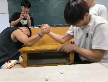 为了拉近同学们之间的距离,同时培养同学们勇于奋斗、顽强拼搏的优良品质。我系组织掰手腕大赛。掰手腕是一种比臂力和腕力的运动。