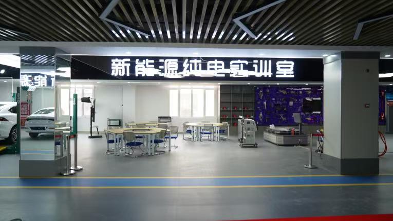 依托先进的新能源汽车实训中心进行教学,新能源汽车实训中心配备新能源汽车动力系统总成、电池管理系统(BMS)测试台、电机控制器实训台,能满足高压电安全操作、电池性能检测、电机故障诊断等实训需求。