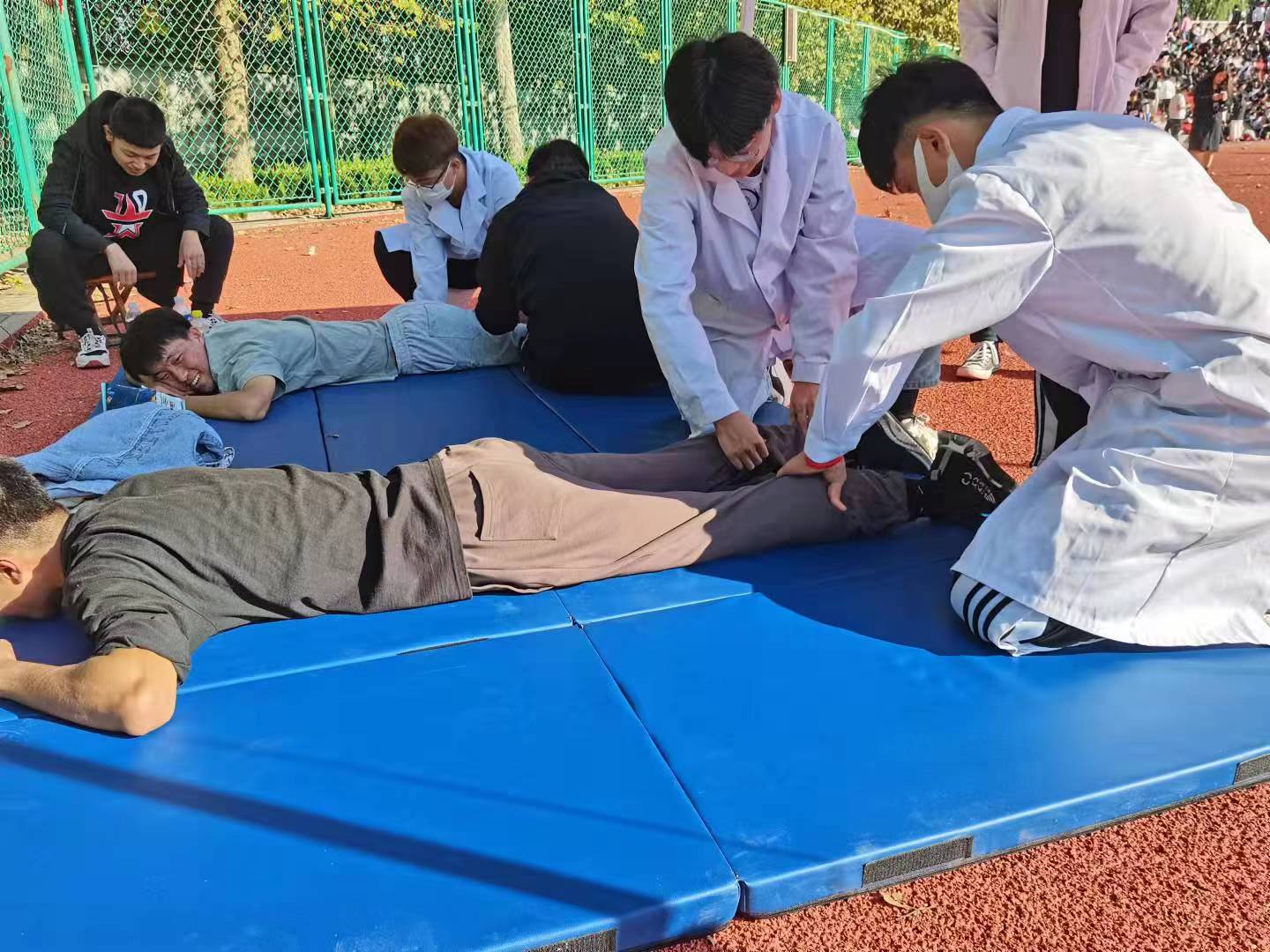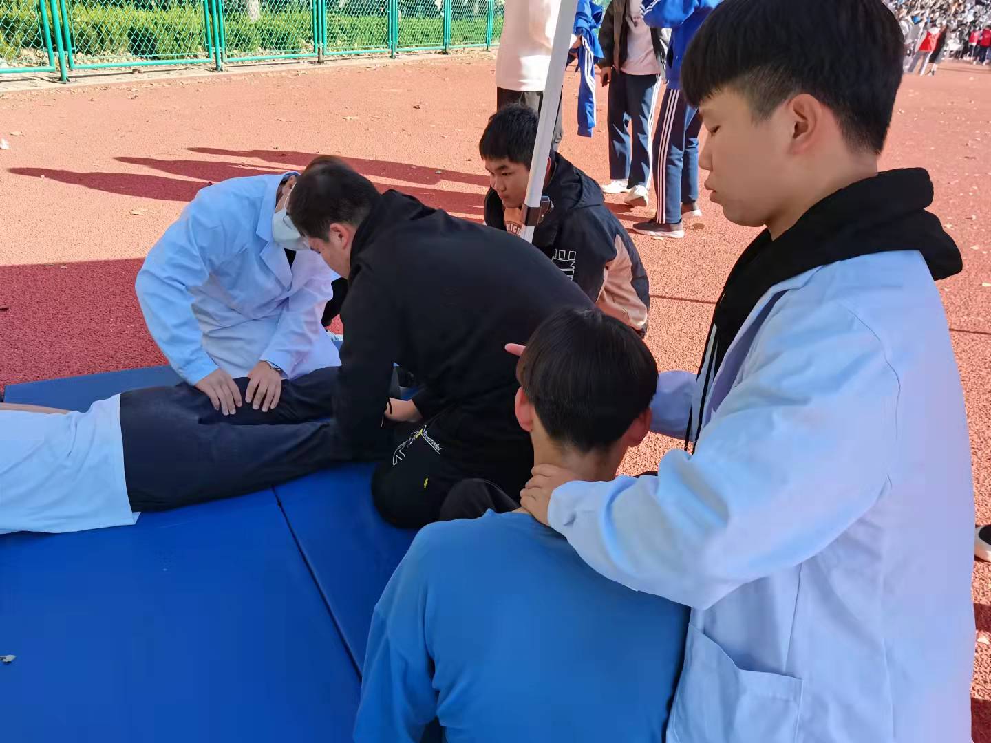 康养社团成员在为运动员开展体能康复的过程中,也吸引了很多学生的关注,在一旁观看体能康复的过程,询问社团情况,激发了对中医养生、护理推拿方面知识的学习兴趣。同时,社团成员们在开展康复活动中,也更好向运动员、同学们进行医学和康复方面的知识普及,更有助于让更多学生掌握正确的运动方式和技巧。