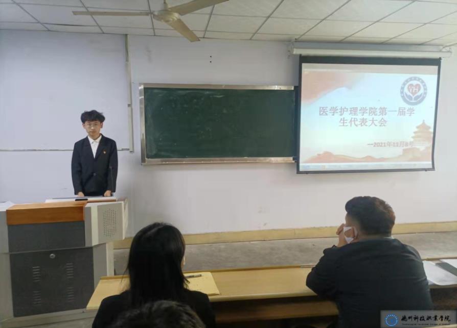 为深入贯彻学习习近平新时代中国特色社会主义思想,总结我院第一次学生代表大会召开以来我院学生会的工作情况,根据《中华全国学生联合会章程》《普通高等学校学生(研究生)代表大会工作规定》《德州科技职业学院章程》和《德州科技职业学院学生会章程》有关文件规定,经德州科技职业学院医学护理学院学生会研究决定,于2021年11月8日在会议室召开德州科技职业学院医学护理学院第一次学生代表大会。