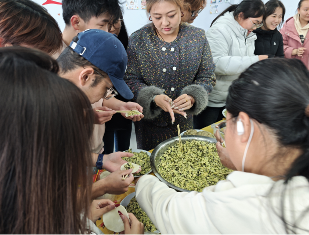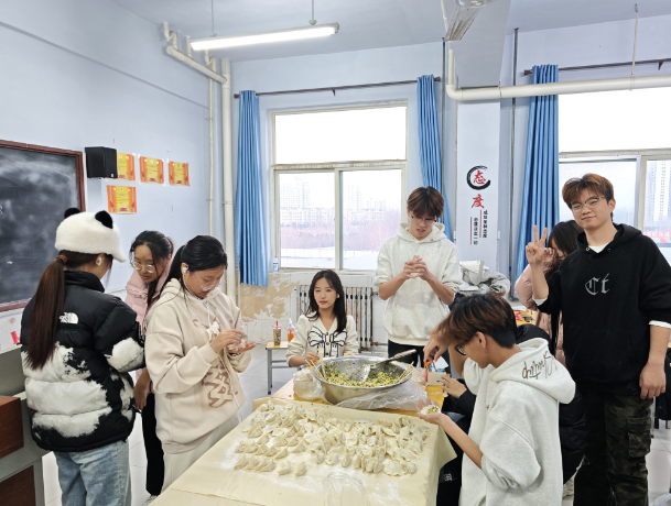 活动现场,面粉与欢笑齐飞,馅料共情谊一色。同学们挽起袖子,跃跃欲试,从生疏到熟练,逐渐包出了形态各异却饱含 心意的饺子。教育与艺术学院党支部郑书记也加入其中,耐心地指导着大家,传授包饺子的技巧,师生之间的默契在一次次的协作中升温。 随着一盘盘饺子下锅煮熟,腾腾热气弥漫在屋内,驱散了冬日的严寒。大家品尝着自己亲手包的饺子,满足感与幸福感溢于言表。这些饺子填满了大家的胃,熟悉的味道让远在他乡的同学们仿佛回到了家中的餐桌旁。 夜幕降临,冬至晚会拉开帷幕。精彩的节目表演、欢快的游戏互动,将气氛推向高潮。同学们的歌声与笑声交织,在这里,他们不再是孤单的异乡人,而是彼此陪伴、共同成长的班级大家庭一员。