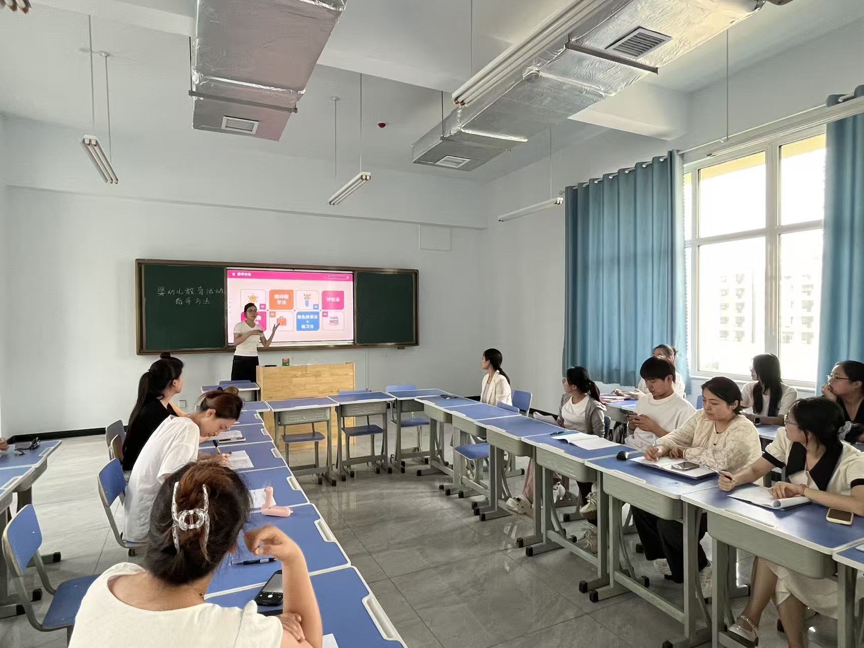 教育与艺术学院两名新教师田梦莹、王孟秋,于A5-201进行公开课讲课,全体教师进行听课学习,两名教师教学设计合理、教态优雅、思政融入自然且明确、语言精准,为其他教师呈现了十分精彩的公开课。