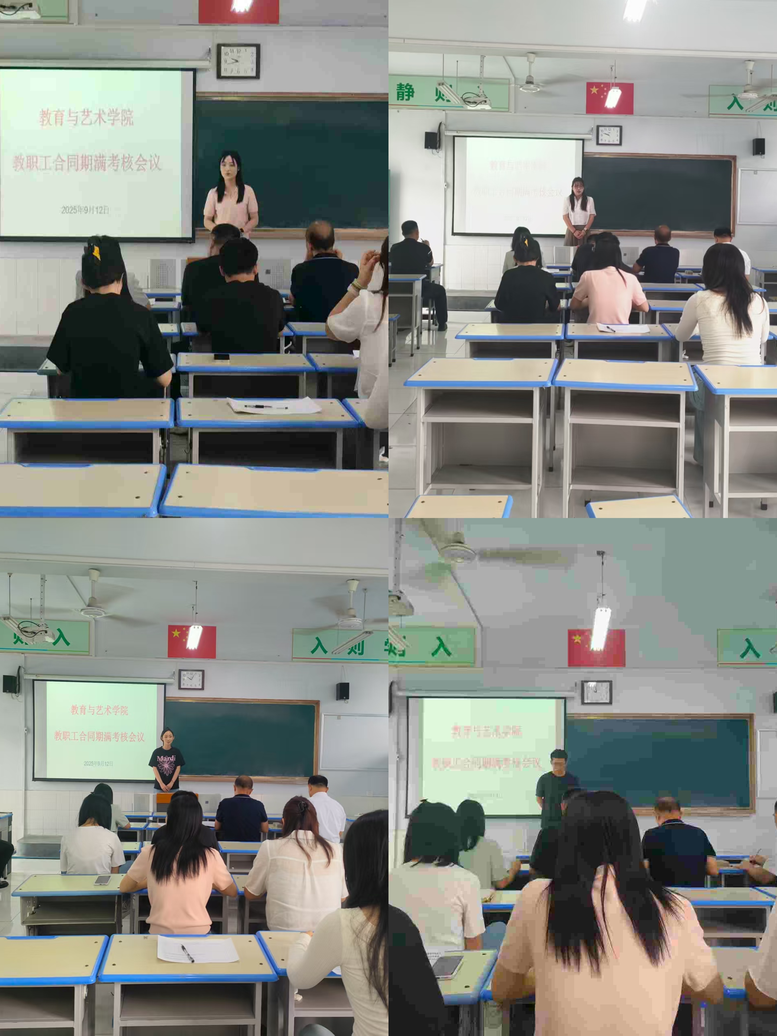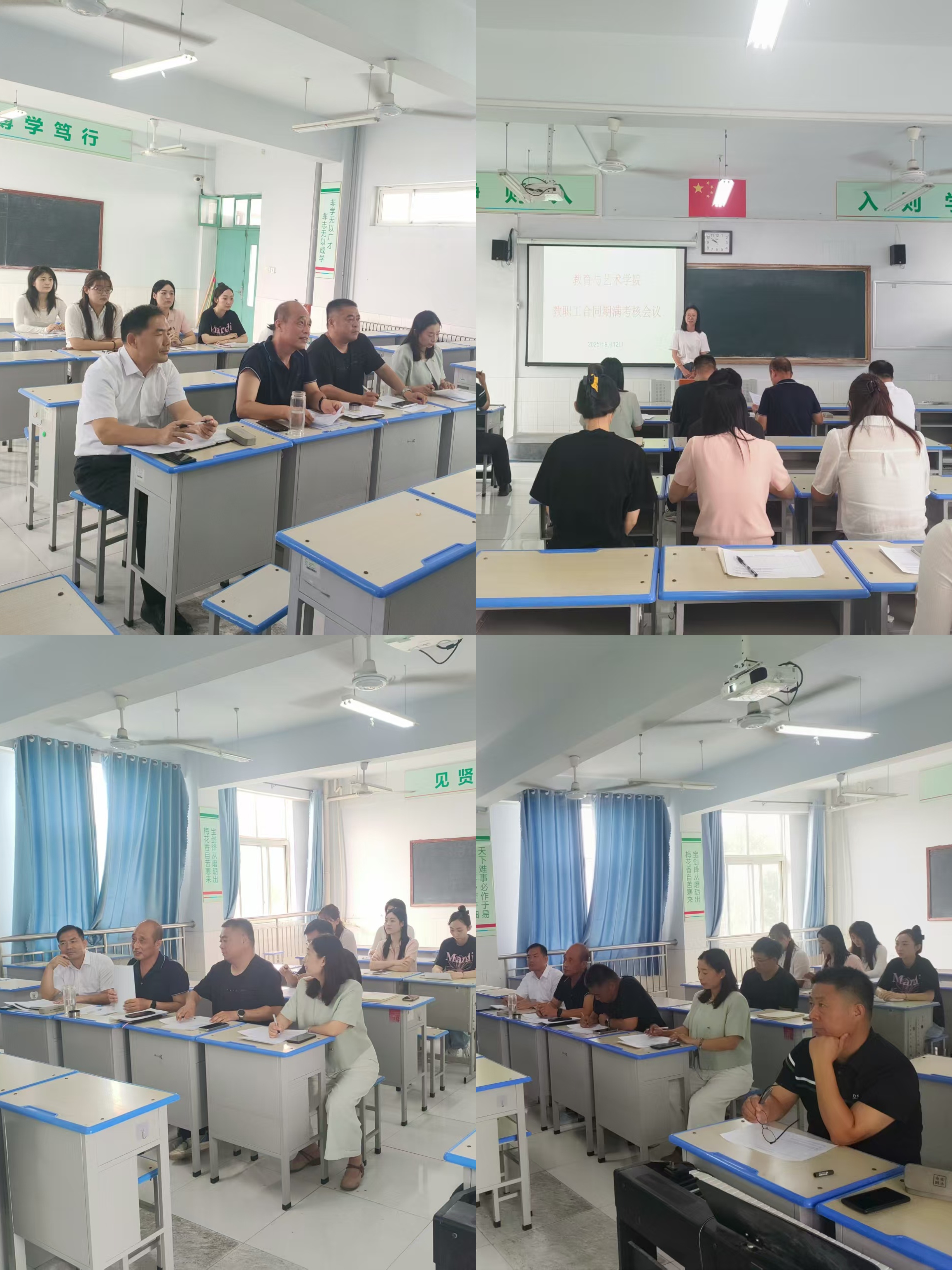 9月12日,教育与艺术学院在禹城校区4-308室举行教职工合同期满考核会议,党总支书记、院长冉祥勇,党总支副书记、副院长郑联先,副院长王登峰,办公室负责人及部分教师代表参加会议,共同组成考评小组。