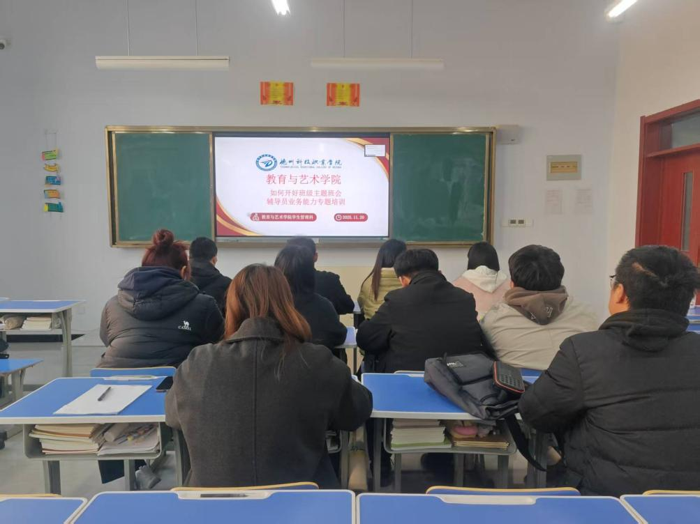 为全面提升辅导员育人能力,备战即将举办的辅导员素质能力单项赛,推动主题班会规范化、系统化、实效化开展,11月20日,教育与艺术学院组织召开“如何开好主题班会”专题培训。学生管理负责人主讲,全院辅导员参加学习。