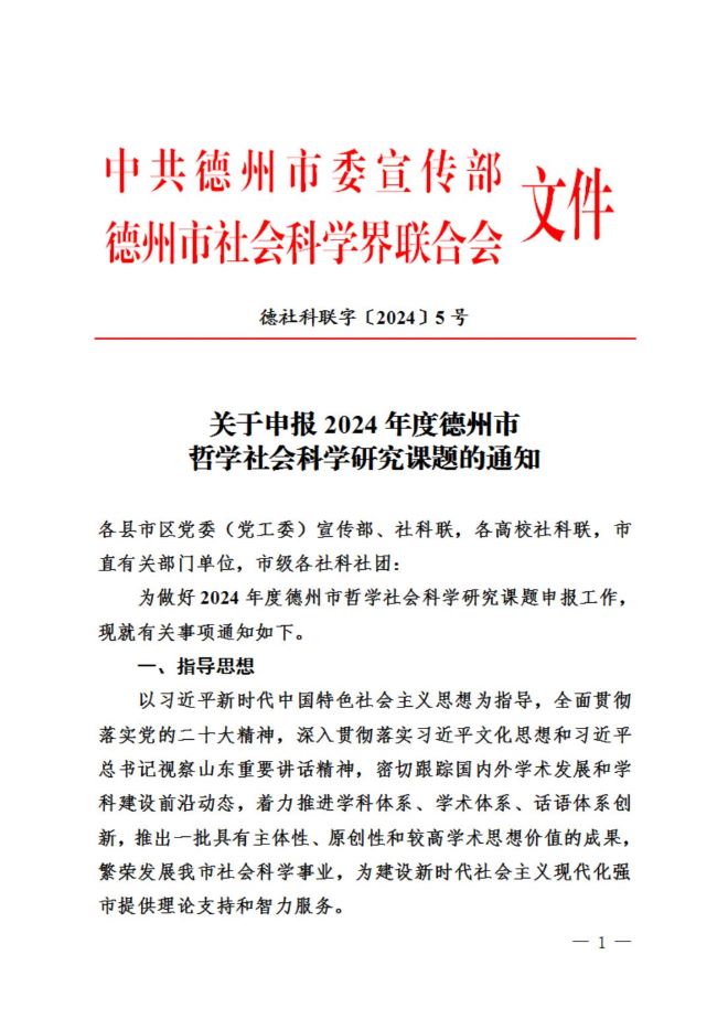 2024年度德州市哲学社会科学研究课题的通知