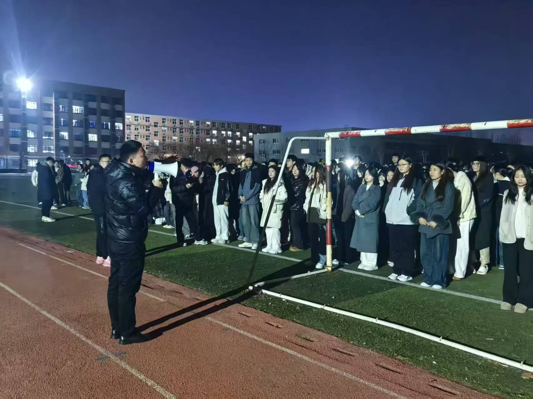 为全面提升学生消防安全意识,增强火灾应急处置能力,确保校园安全防线,3月6日晚,教育与艺术学院学生管理科联合学团工作部、公寓管理科,组织全体2024级学生及辅导员,在禹城校区3号、5号宿舍楼开展联合消防应急疏散演练。活动以“模拟火情实战+安全教育”为主线,全面检验应急预案的可行性与师生协同应对能力。演练严格遵循消防安全管理规定,提前向学校消防科科长郑范兴报备方案,并在学团工作部与公寓管理科的大力支持及消防科专业指导下,优化流程、完善细节,确保演练科学规范、安全有序。