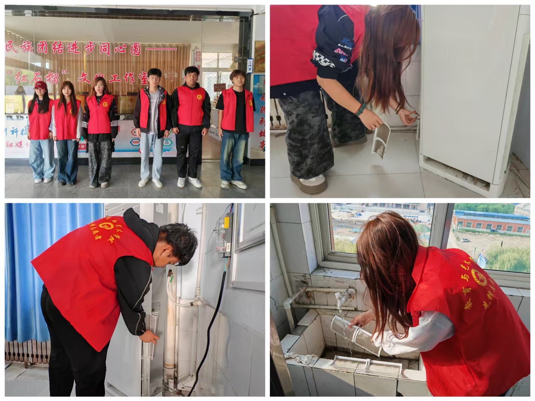 活动开始前,志愿服务队提前制定了详细的清洗计划,明确分工,并准备好清洁工具。活动过程中,学生干部们分工协作,相互配合,展现出了良好的团队精神。他们小心翼翼地拆开空调外壳,取出布满灰尘的滤网,仔细地用刷子去除滤网上的灰尘,再放入水中浸泡,经过反复冲洗,原本布满灰尘的滤网变得焕然一新。面对清洗过程中遇到的一些难题,大家也积极沟通,共同商讨解决方案,确保每一台空调滤网都能得到彻底清洁。