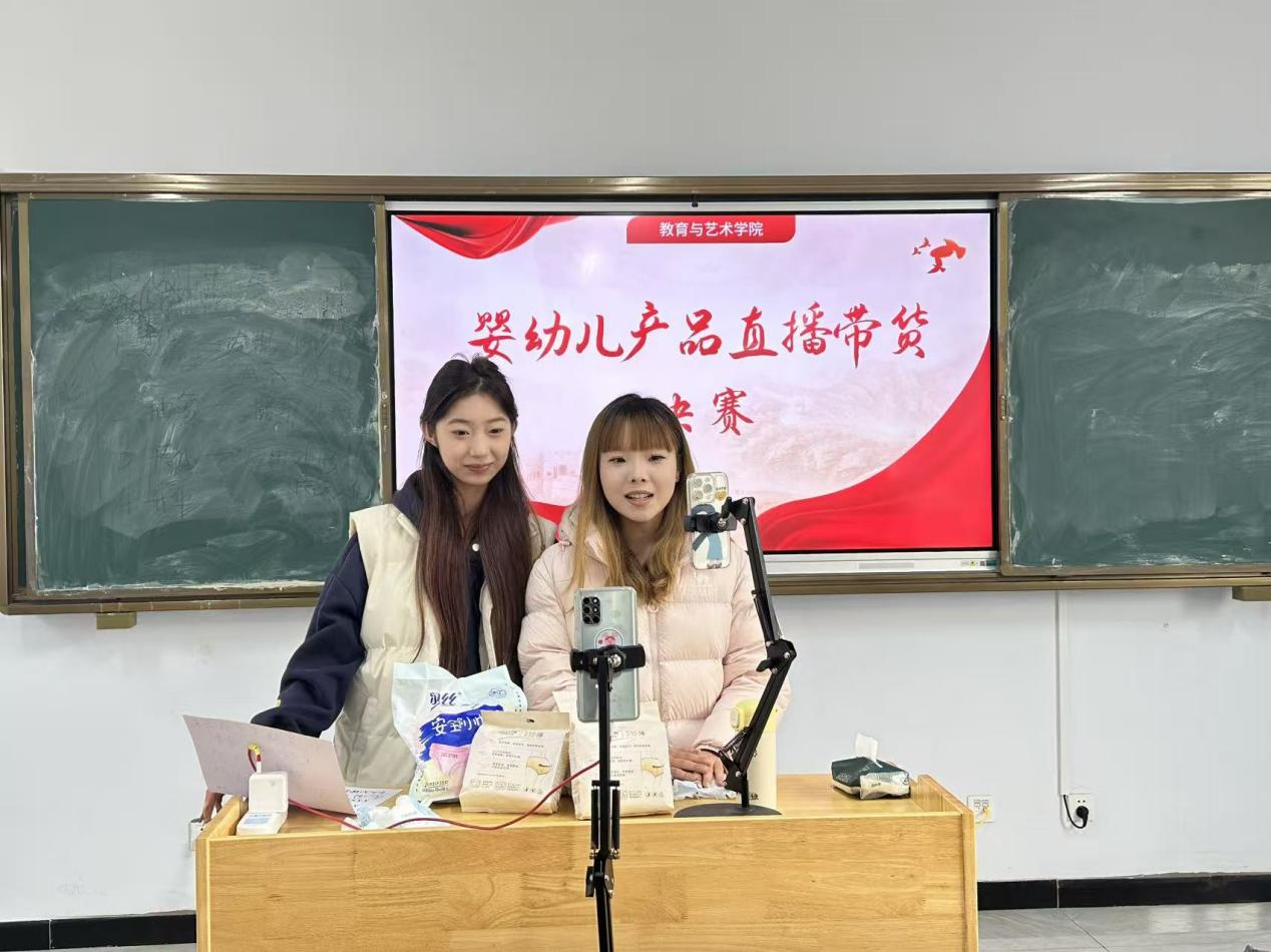 为提升学生专业实践能力与新媒体营销技能,积累婴幼儿产品行业实战经验,教育与艺术学院精心筹备的“婴幼儿产品直播带货大赛”,历经初赛选拔与决赛角逐于近日圆满落幕。本次大赛以“专业赋能直播,实战锤炼本领”为核心,吸引德州校区、禹城校区2023级至2025级各专业学生踊跃参与,最终一批兼具专业素养与直播才华的选手脱颖而出。