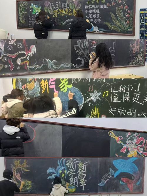 在此次活动中,各班同学充分发挥创意与团队协作精神。他们精心设计排版,用绚丽的色彩、优美的文字和生动的图案,在黑板上描绘出对新学期的期待与展望。