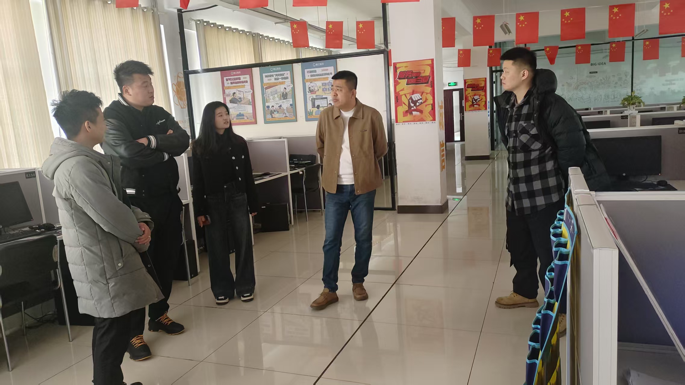 走访期间,王龙科长和辅导员老师深入企业工作一线,实地了解了学生在抖音直播切片、美团客服等岗位的实习情况,并与企业项目负责人就学生的工作表现、专业技能提升以及职业发展规划等方面进行了深入交流。企业负责人对我校实习生的专业素养、学习能力和工作态度给予了高度评价,并表示将继续为我校学生提供优质的实习平台和职业发展机会。