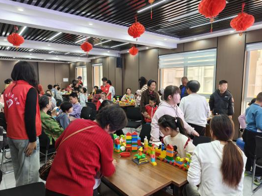 在乐高亲子互动环节,志愿者们带领孩子们与家长一同开启创意搭建之旅。从积木拼接、造型设计到作品完成,家长与孩子默契配合、动手实践,在趣味满满的搭建过程中增进情感交流,激发孩子们的想象力与创造力。现场欢声笑语不断,温馨的亲子氛围弥漫在整个服务中心,让孩子们在玩乐中收获成长,也让亲子关系更加亲密。