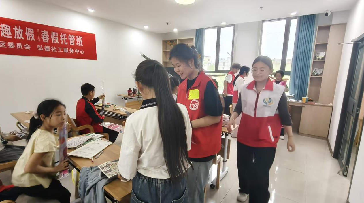 春假期间,不少家长忙于工作无暇照看孩子,此次活动有效缓解了家长的看护压力,为孩子们提供了安全、充实的假期陪伴。活动中,志愿者们精心组织多样活动,耐心辅导孩子完成作业,逐一解答作业难题;带领大家体验趣味剪纸,手把手教孩子创作春日花草、小动物等窗花,感受传统手工的魅力;还组织撕名牌等欢乐互动游戏,全程陪护安全,让孩子们在轻松愉快的氛围中学有所获、玩有所乐。